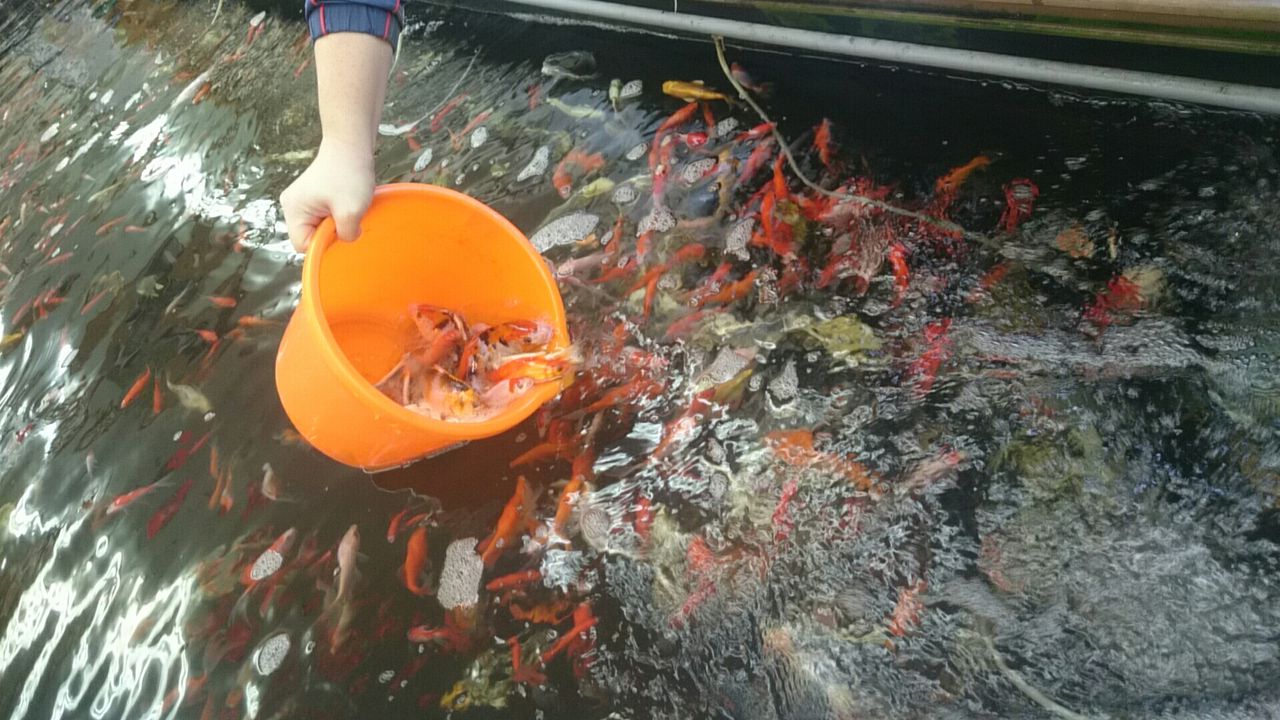 子供達は金魚釣り。
