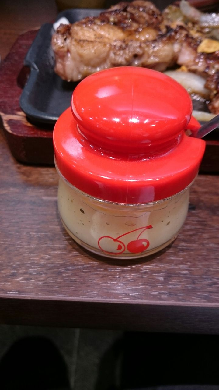 奥にあるポットはステーキソース。