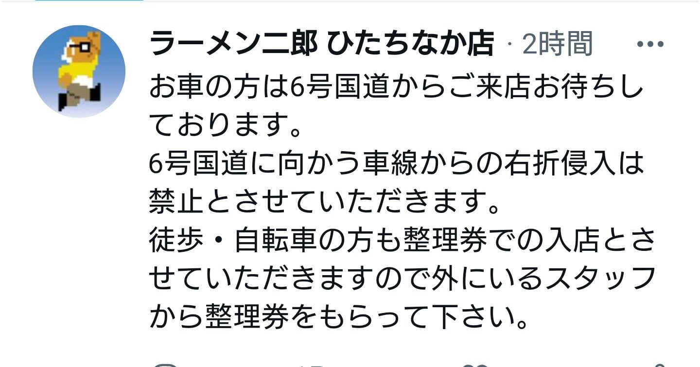 【ラーメン二郎ひたちなか店】20211212 オープンしました! 2021年12月12日 11:12 スポンサードリンク 【ラーメン二郎ひたちなか店】20211212 オープン!ラーメン二郎ひたちなか店 オープンしました!昨日の時点で分かっていたんすがオープンしてからのログっす。整理券配ってますな。私は仕事なんで行けません(涙)落ち着いたら行きます!では。また!◯追加 12時40分に整理券配布終了す カテゴリなしの他の記事 < 前の記事次の記事 > コメント コメントフォーム 名前 コメント 評価する リセット リセット 顔 星 投稿する 情報を記憶