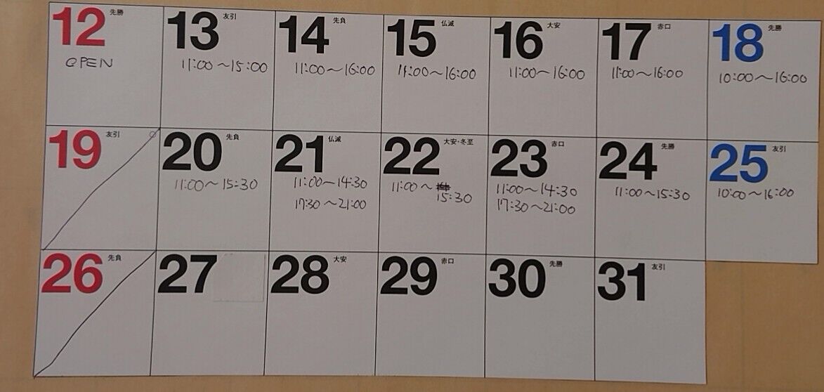 カレンダーが貼ってある。