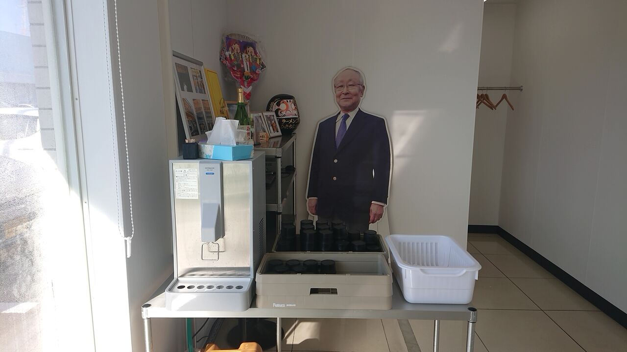店の奥に水 レンゲ ティッシュがある。