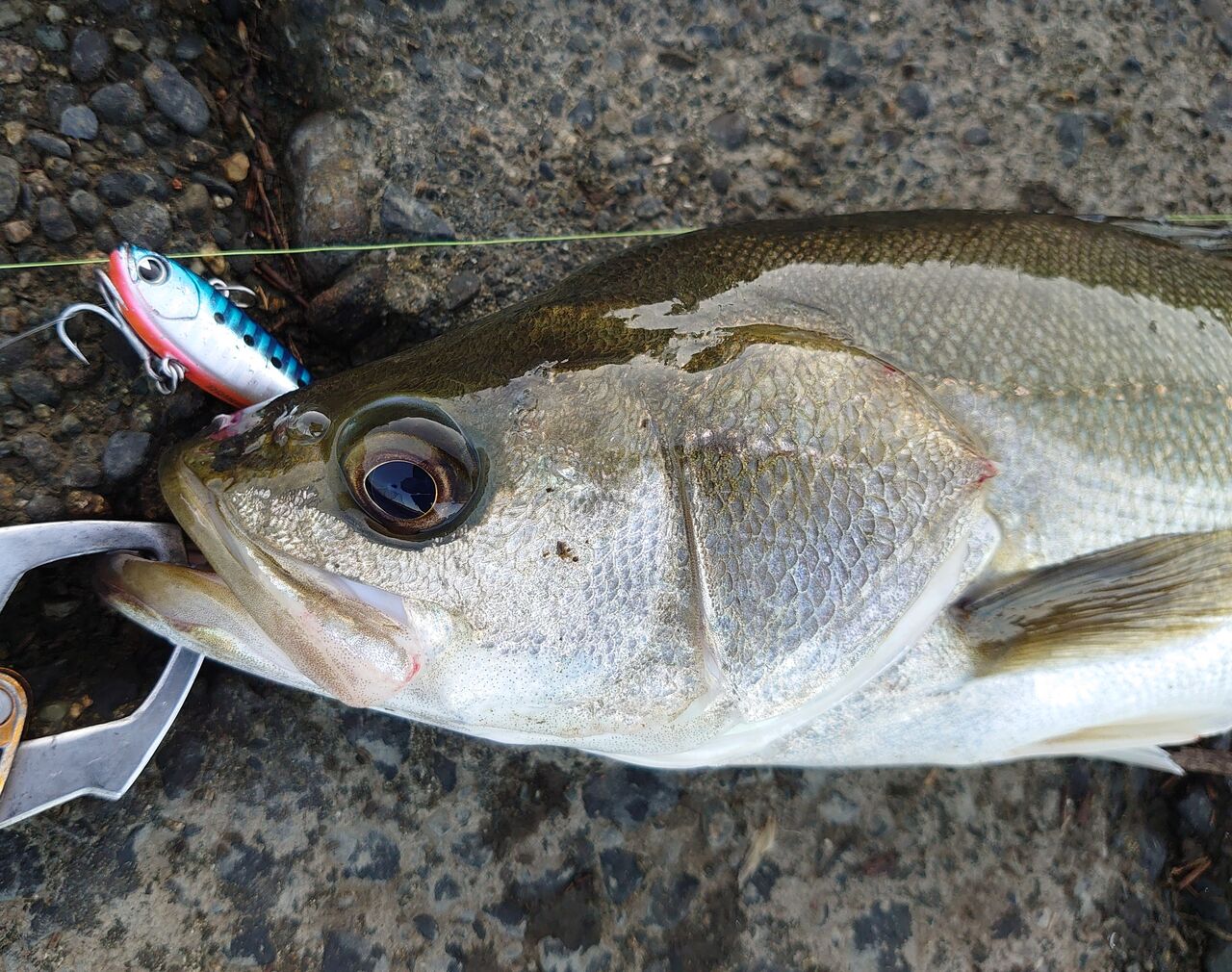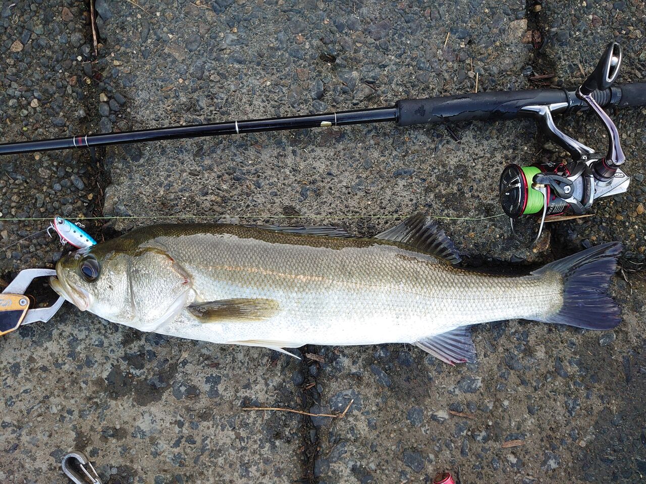 粘ってバイブレーションで小さいの釣れた写真す。
