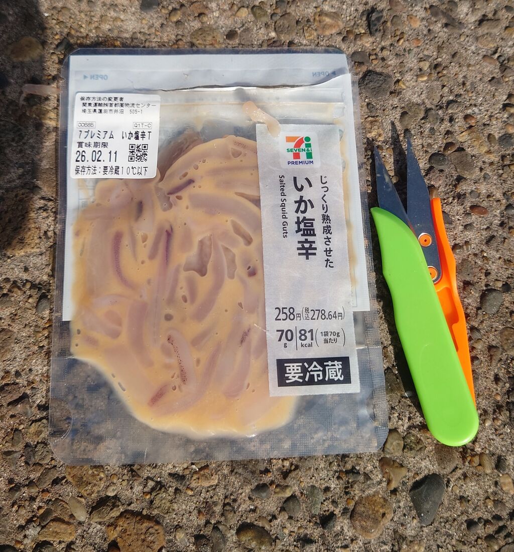 イカの塩辛だとエサ持ちが良いから楽!